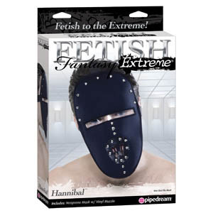 Black Fetish Bondage Hood Take your role-playing fantasies to the extreme with the Fetish Fantasy Extreme Hannibal Mask. This soft neoprene mask contours to the face and features a thin eye slit for limited viewing. Small metal rivets adorn the top and mouth of the mask, which has four slits of vinyl for easy breathing and restricted speaking.