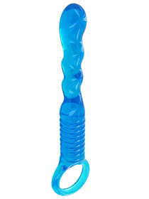 This blue penis probe is a 6.5" translucent jelly, double-ended dildo with a subtle tapered tipped probe. The EX Line by Seven Creations is the very best in simply shaped erotic toys for his and her pleasure.