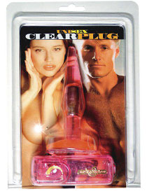 Plug, Jelly material, colour pink, with vibration. Ultra clear unisex buttplug with powerful multispeed bullet placed inside. Easy dial controller.
