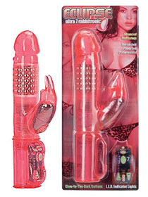 Eclipse Ultra 7 Rabbitronic Rabbit Vibrator One of the newest and greatest rabbit yet. This rabbit vibratorhas everything: including Oscillating tip Rotating shaft with 6 rows of 6 metal beads that spin at 6 different speeds Clit stimulator is rampant with 3 vibrating modes, 3 pulsating modes and 1 escalating mode 6 stage ocsillation/rotation LED indicator, glow in the dark controls If you own a standard rabbit and are looking for a replacement, this vibrator is the one for you!